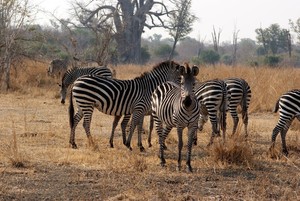 | Morgens um 5.30 war Tagwache, um 06.30 Abfahrt mit dem „Theaterwagen“. Es war noch kühl am Morgen und die Passagiere hatten sich in Decken und Jacken eingehüllt. Nach kurzer Fahrt zum Main Gate querten wir dann den Luangwa, der an dieser Stelle den Park begrenzt. Diese fantastische Landschaft, entlang dem Luangwe, bekam mit den ersten Sonnenstrahlen auch Farbe, Die rote Erde, das verdorrte Steppengras und die teilweise nicht mehr ganz grünen Bäume erinnerten an unsere Herbstland-schaften. Aesende Giraffen und Antilopen, faulenzende Löwen, sich suhlende Hippos in Tümpeln. Ein immer wieder faszinierendes Bild |