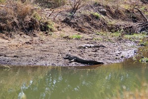 Ja, den Python habe ich nicht mehr gefunden, dafür hatte ich eine tolle Begegnung mit einem Waran, oder auch Water Monitor, wie ihn die Einheimischen nennen. Ein grosses Exemplar, sicher so gegen die 2 Meter lang. Dies hat mich für den verlorenen Python mehr als entschädigt. |