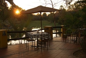 | Ich musste mich beeilen, dass ich rechtzeitig, bevor die Tore schlossen, aus dem Park fuhr. Die zielstrebige Fahrt liess mir leider kaum Zeit die herrliche Abend-stimmung über dem Sambesi zu geniessen. |