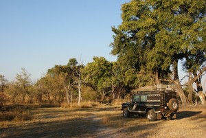 Die Fahrt mit dem PW zum Nationalpark über die sehr schlechte Strasse setzte mir weniger, aber Paulichen um so mehr zu. Nach jedem Schlagloch, welches der Chauffeur getroffen hatte, sah sie ihn missmutig an, jedoch ohne ein Wort zu sagen. Er wusste, was sie meinte. Nach vier Stunden holpriger Pistenfahrt sind wir dann im Wildlife-Camp, das eben ihrer Tochter gehört, angekommen. |